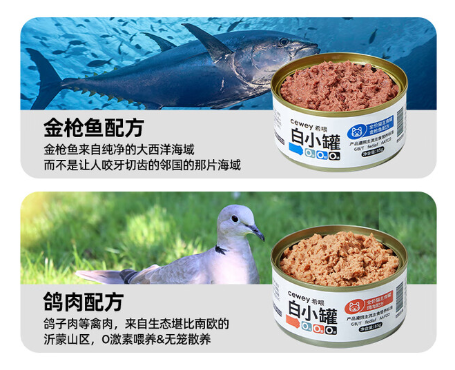 性价比高的猫罐头:希喂全价猫主食罐头的各项原料都符合HACCP标准,鸽肉、鸡胸肉等核心肉源达人类食用标准,还公开了主要原料来源。其肉含量96%且无肉粉,营养主要由纯肉、内脏和骨骼等肉类成分提供。品牌用自研的真空低温煨煮技术,将锁鲜率提升80%,既能留住鲜肉的天然风味,又能保留更多活性营养,兼顾适口性与营养。