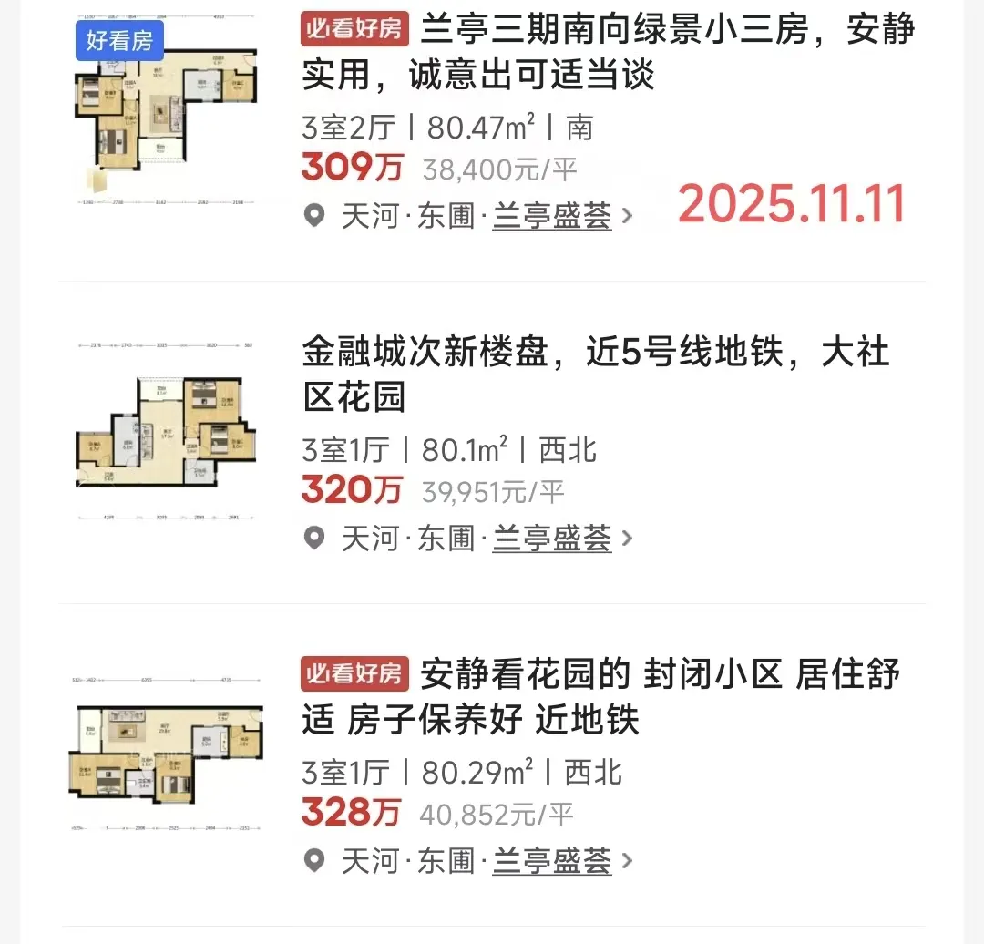 大部分3房业主挂盘价格在300万以上,都可以谈,兰亭业主们还是想出手的。