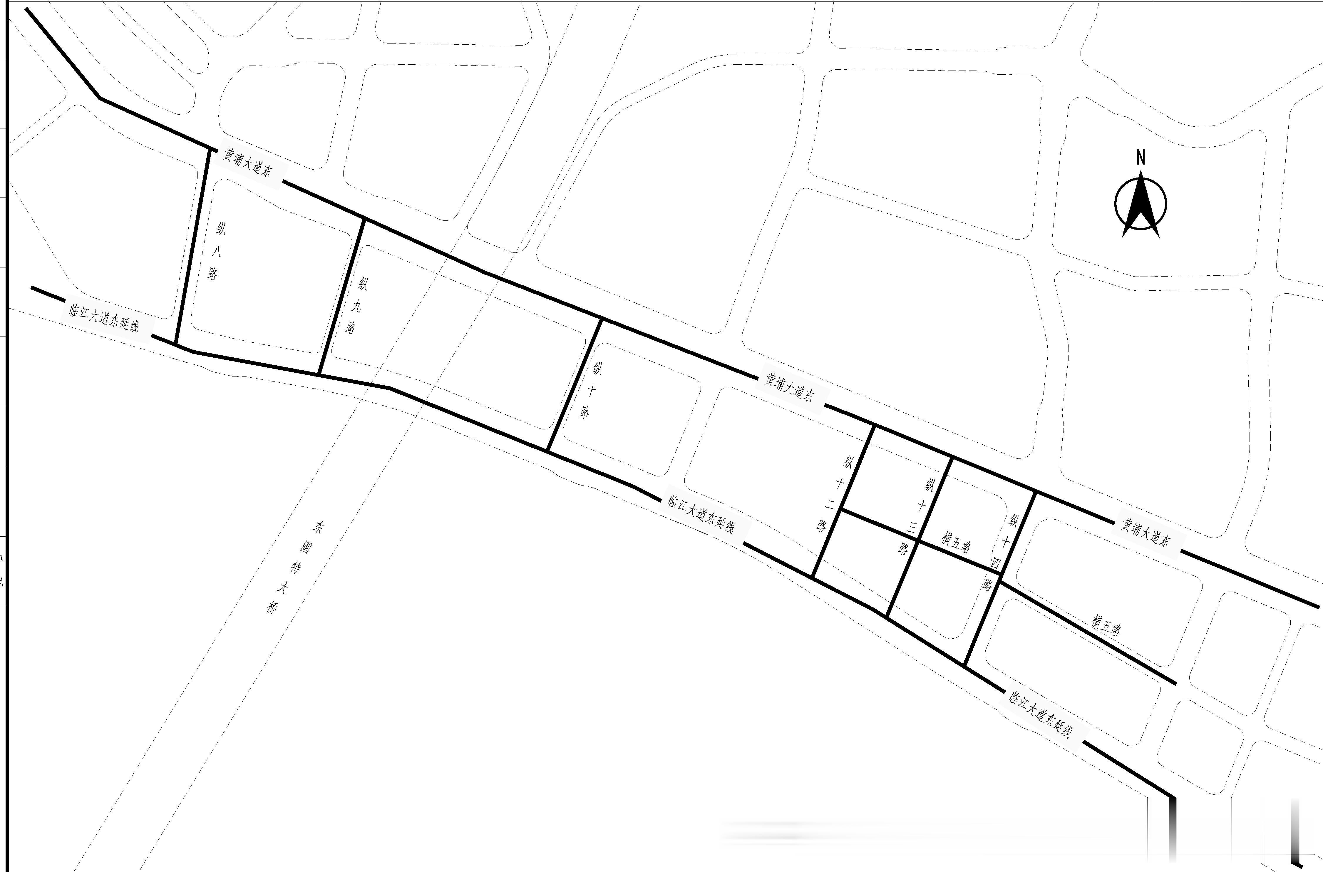 纵十二路,城市支路,长约225.5m,红线宽度20m,双向双车道,设计速度30km/h;
