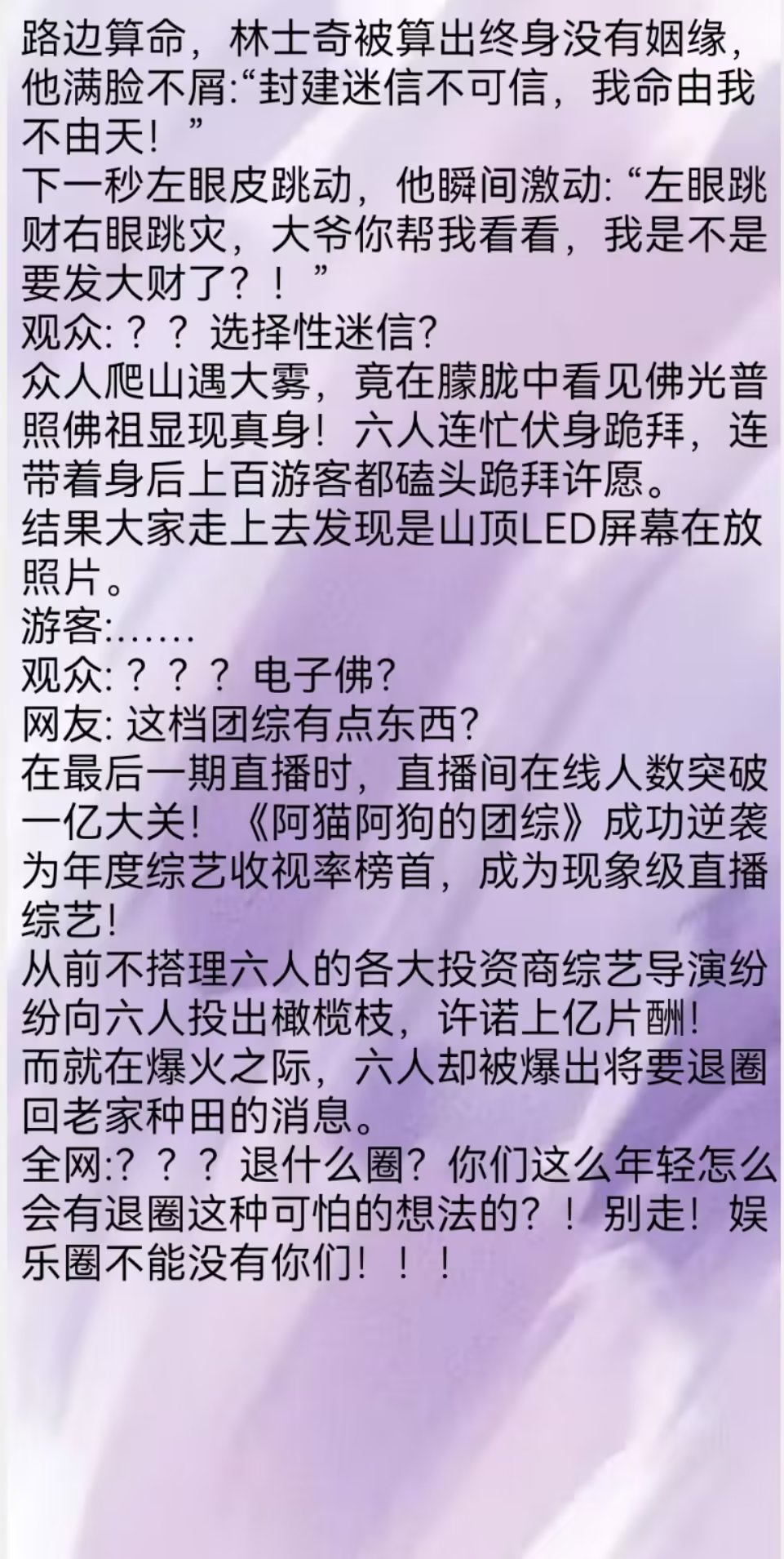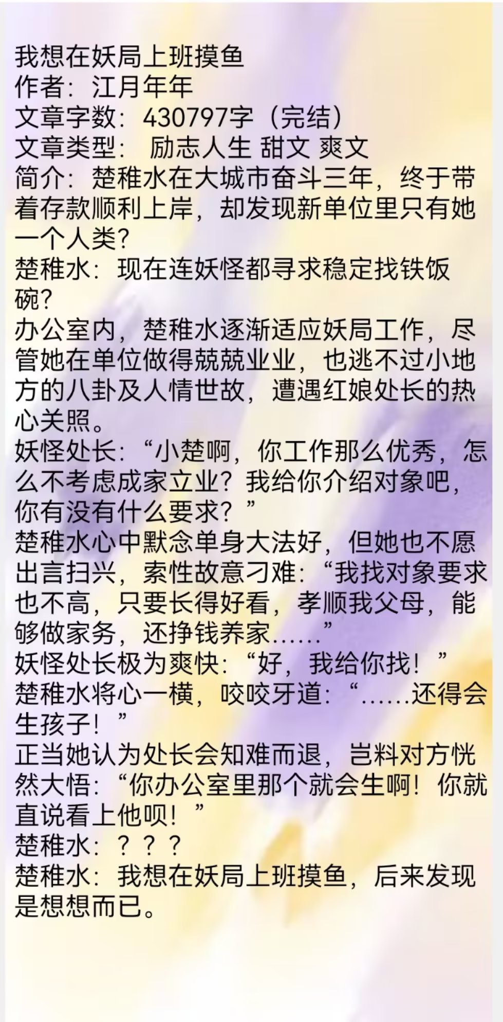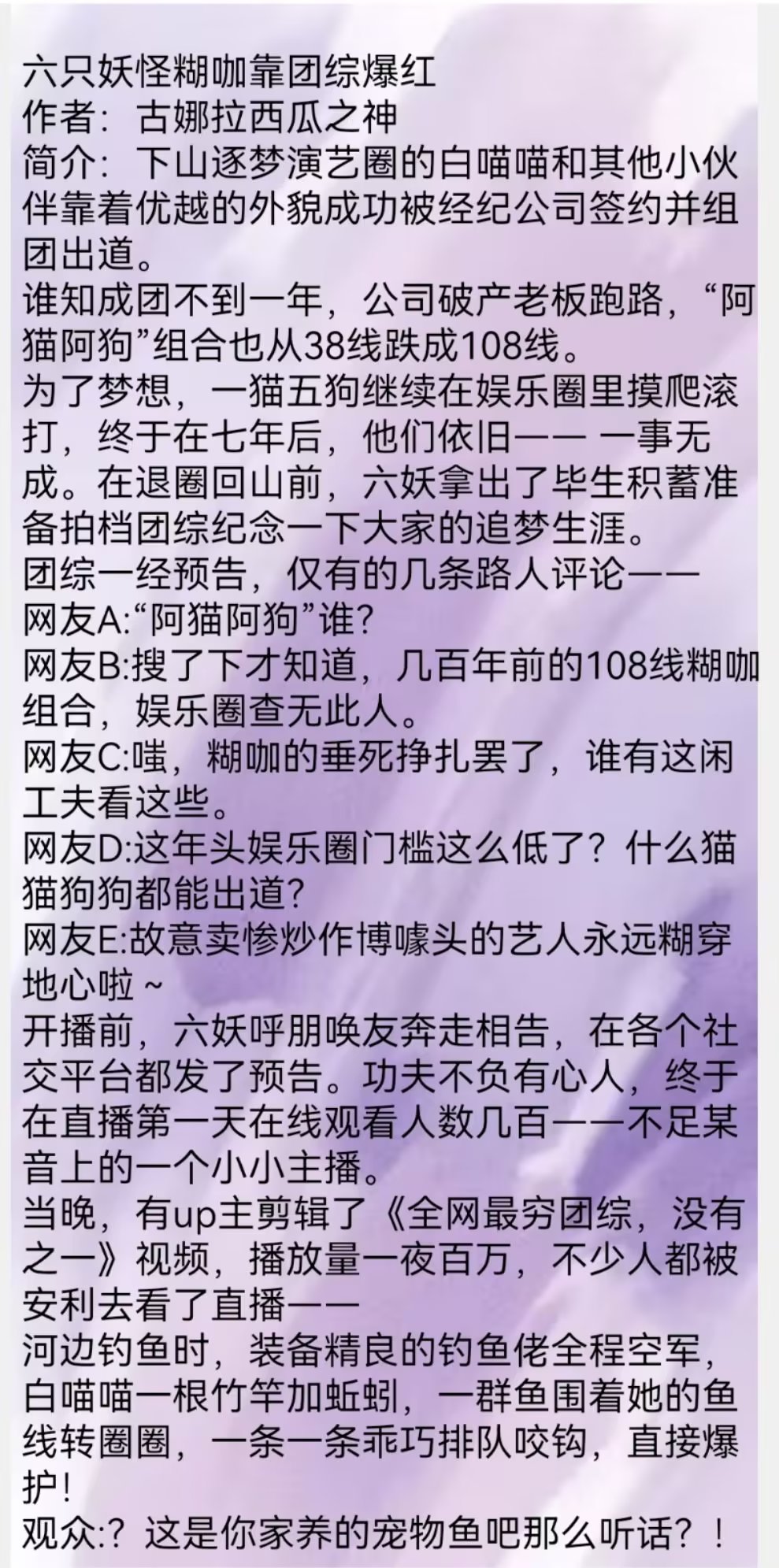 《霸道野猫爱上我,喵!》《我想在妖局上班摸鱼》《星际第一造梦师》 《六只妖怪糊咖靠团综爆红》
