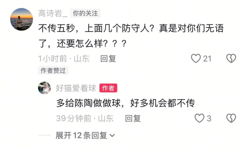 赛后争强好胜的高诗岩还怒怼球迷。有网友社媒发文吐槽高诗岩表现:大家看看高诗岩的神级操作。高诗岩评论区回怼该网友:不传五秒?上面几个防守人?真是对你们无语了,还要怎么样?然而球迷并认同高诗岩的狡辩,他们怒斥:多给陈、陶做做球,好多机会都不传。如果高诗岩分配球合理,山东队也不会遭到准绝杀,拿下比赛的机会还是很大的。败就败在高诗岩的手里,第一回合战北控,也是高诗岩出风头,最后一投也是由自己出手,导致输球。