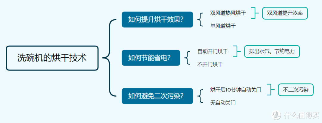 烘干技术在整个洗碗过程中最具挑战的功能,也是技术最复杂的一项功能。烘干效果不好容易烘不干餐具,产生潮湿异味,久而久之成为二次污染餐具的污染源。无开门技术的洗碗机,容易增加耗电量。无自动关门技术的洗碗机又有积灰落灰的担心。