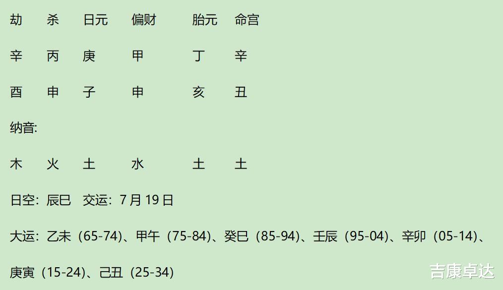 2庚比生壬食,壬食生甲偏财;大运寅与日支子夹丑,流年申合子,小限寅与日支子夹丑。