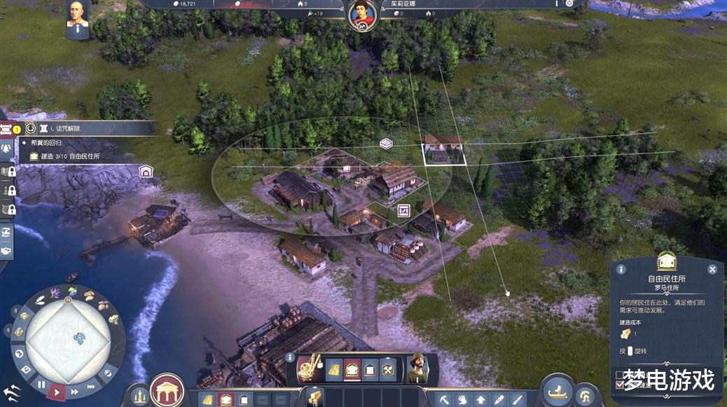 本次试玩是在战役模式第一章或沙盒模式中任意游玩,由于时间关系,笔者实际试玩的是战役模式第一章,扮演新上任的拉丁姆总督,从一个贸易港口开始建设自己的城市,提升城市规模的同时维持与罗马皇帝的关系。