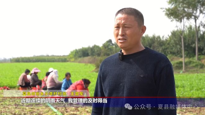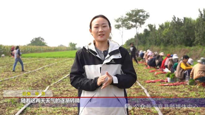 我现在是在夏县胡张乡小李村的香菜种植基地,随着这两天天气的逐渐转晴,这里的300余亩香菜也迎来了采收季。我们可以看到,工人师傅们正抢抓晴好天气抓紧收割、捆绑,之后送往村子里的收购点即刻发往全国各地。