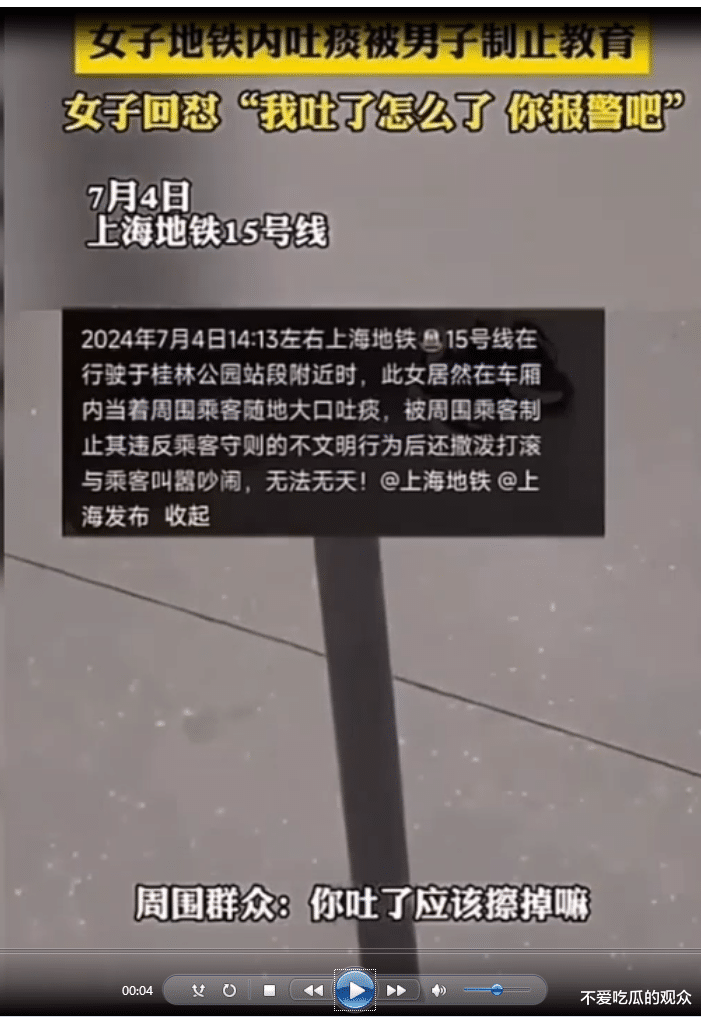 另一位乘客提醒她:“大姐,这里是公共场所,吐痰这种行为可不妥当啊。”