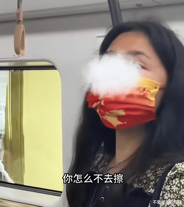 她在车厢内随意喷洒不明液体、随地吐痰。