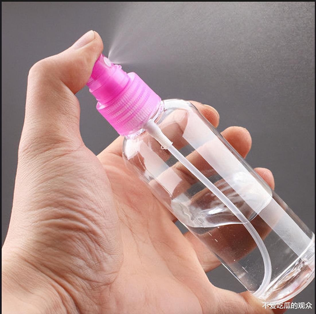 一位中年女性从包中拿出一瓶不明液体,随即在周边开始喷洒。