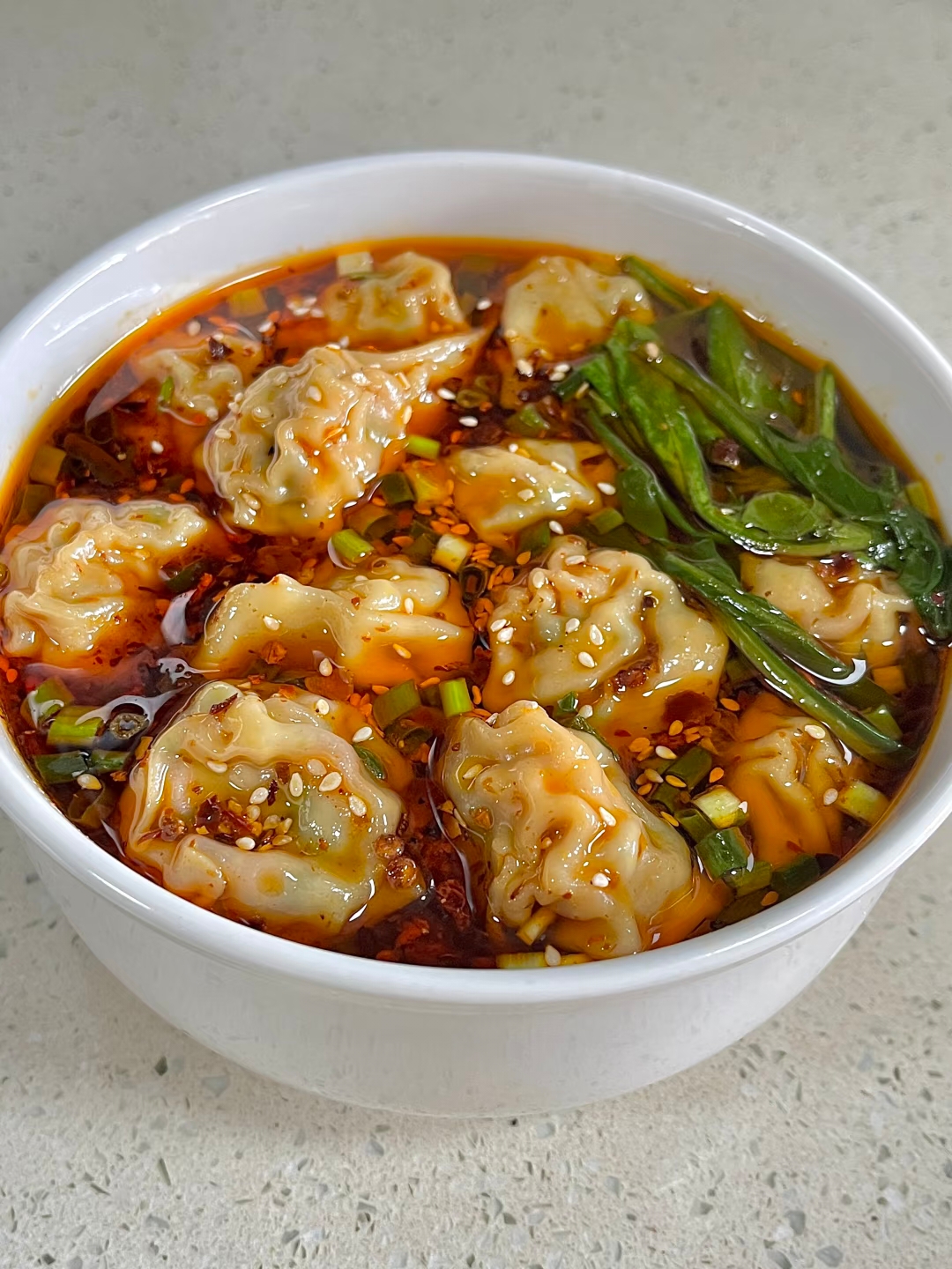 最经典的当属红油抄手:碗底铺上紫菜碎、虾皮、榨菜丁,淋1勺生抽+半勺醋+少许糖,浇上两勺红油辣子。滚烫的抄手带汤倒入,最后撒把葱花,瞬间香气四溢。若给老人孩子吃,清汤版本更显温柔:猪骨汤里飘着几朵香菇,撒点葱花,滴两滴香油,鲜得眉毛都要掉下来。