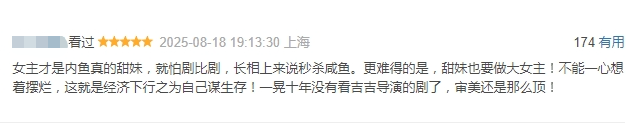 有网友打出了五星好评,称赞男女主颜值高,导演审美在线,画面赏心悦目。