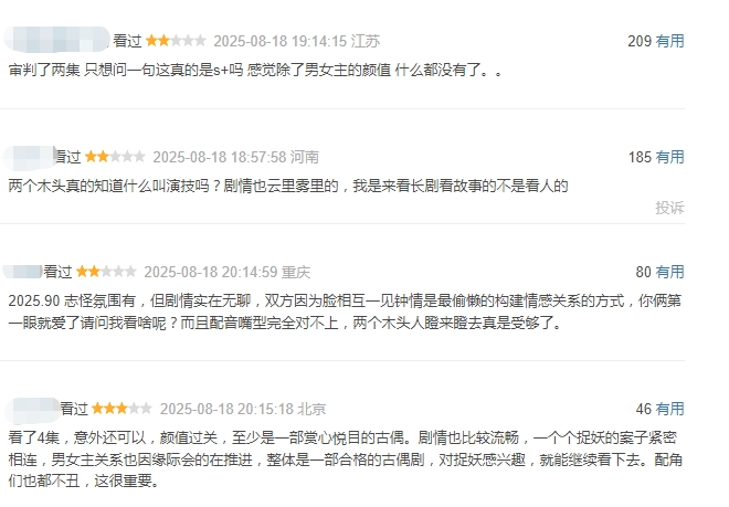 也有不少网友犀利批评,直指剧情云里雾里,主演只有颜值没有演技。
