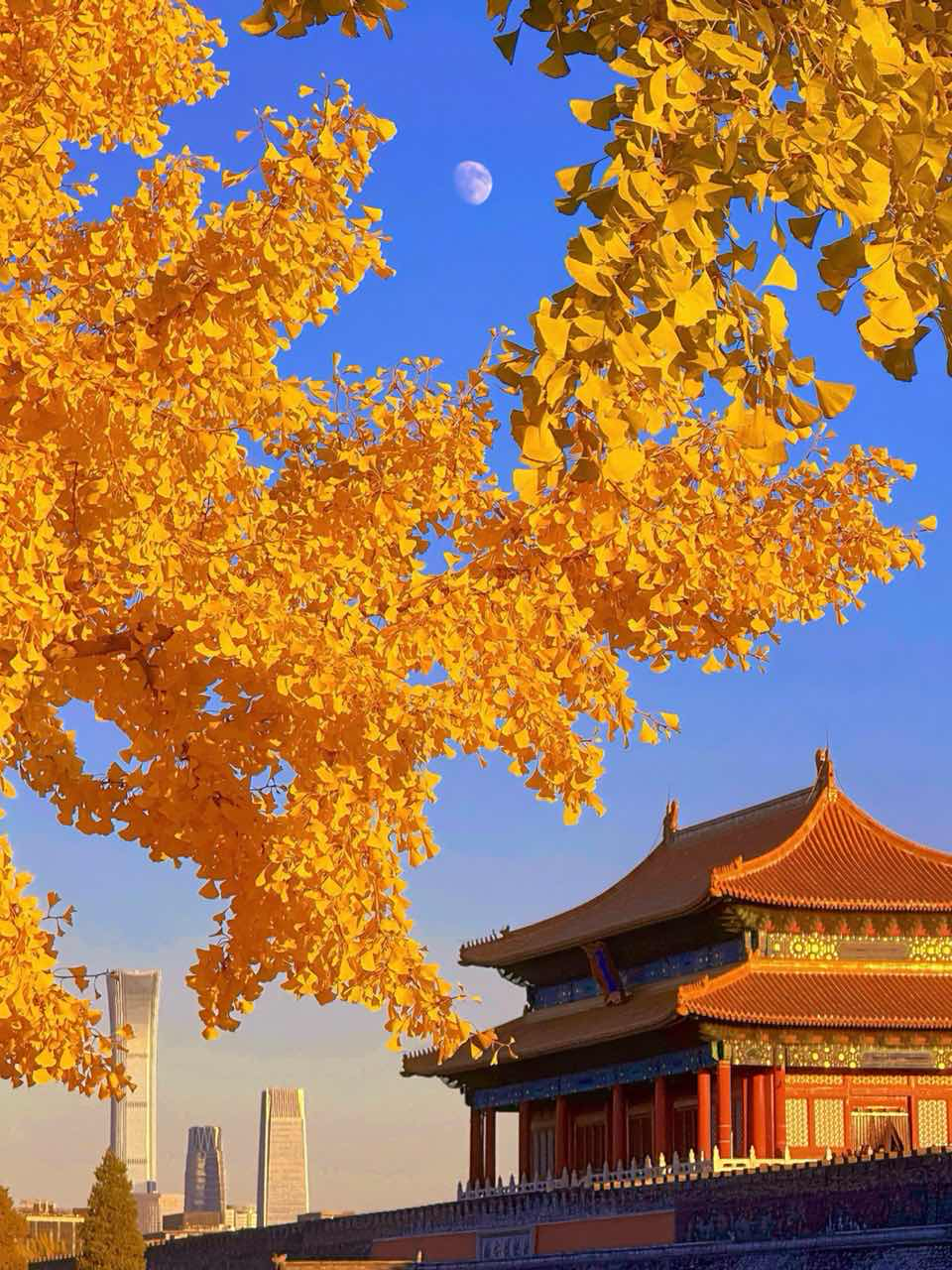 红墙古建旁银杏、元宝枫铺就盛景,这个周末北国深秋在朋友圈“杀疯了”。