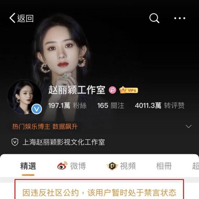 没想到8月24日,赵丽颖工作室的微博突然呈现当前为“禁言状态”,系统标记因为该微博违反社区公约,事后官方也发出相关公告,赵丽颖工作室微博成了史上受此惩戒的第一人。
