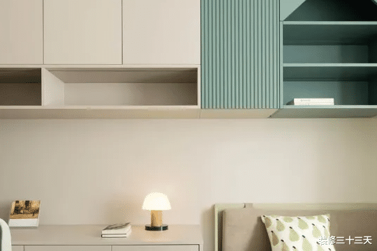 ▲ 过道增设收纳柜,中间做开放格可以放孩子们的书籍