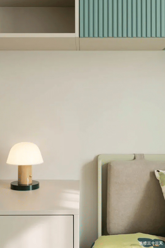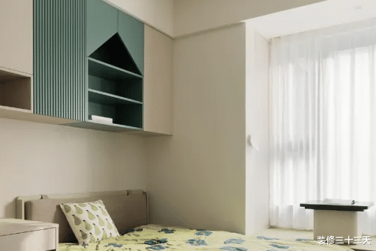 ▲ 整体功能齐全且温馨的南儿童房,床头设置吊柜,开放格与拼色的设计,让柜子有轻盈感