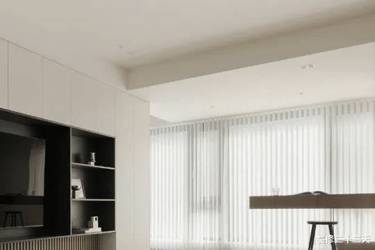 ▲ 沿墙定制整排电视储物柜,半藏半露设计,兼具美观性与实用性