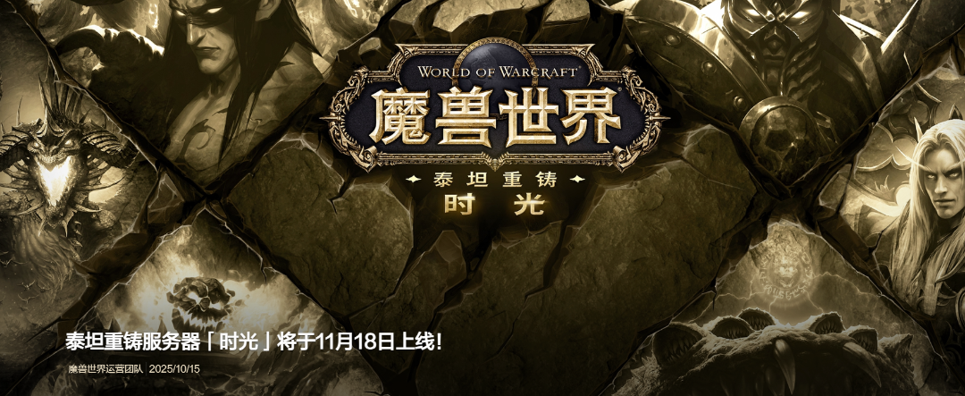 《魔兽世界》泰坦重铸服务器11月18日开启:“时光”服务器基于WLK框架重构,开放80级团本乱序挑战,11月14日可抢先体验,预约领传家宝,击败巫妖王可获专属坐骑。
