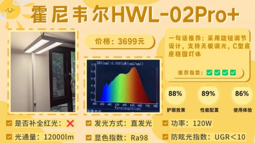 护眼大路灯哪个牌子好?这一款霍尼韦尔HWL-02Pro+外观采用了双边对称式设计,结构感更强,也更符合现代简约家装的视觉风格,在核心光学技术上,它搭载霍尼韦尔自研的Sunturalux芯片,可使照明输出更加稳定、耐用,灯光表现方面,霍尼韦尔通过漫反射光学结构打造出柔和、不刺眼的照明效果,但要注意的是,霍尼韦尔仅支持无极调光,并不支持其他智能功能以及上下独立调光。
