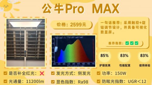 护眼大路灯哪个牌子好?公牛Pro MAX大路灯外观设计具有很高的辨识度,灯杆底部创新集安装了插排功能,实现照明与供电二合一。还采用了紫光激发技术,从光源有效抑制有害蓝光的产生,缓解长时间用眼带来的疲劳感。拥有11300lm的总光通量和20㎡的宽广照明覆盖,能够轻松满足大空间的照明需求。4000K中性色温有助于营造专注氛围,并支持语音指令,更加方便进行开关和调光操作。需要注意的是,公牛Pro Max不支持上下光源独立调节,在使用灵活性上稍有局限。