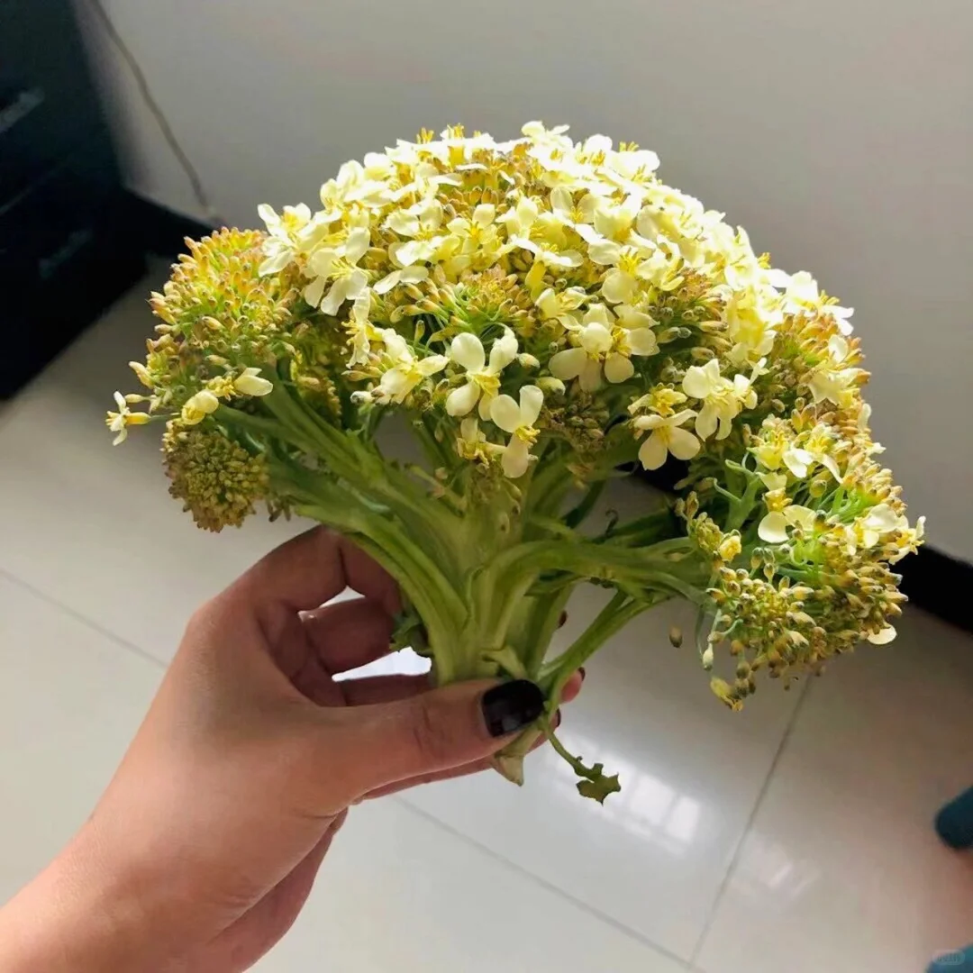 有些人同样因为忘记吃而导致买回家的西兰花,在适宜的温湿度下,慢慢的开出一朵又一朵的花。