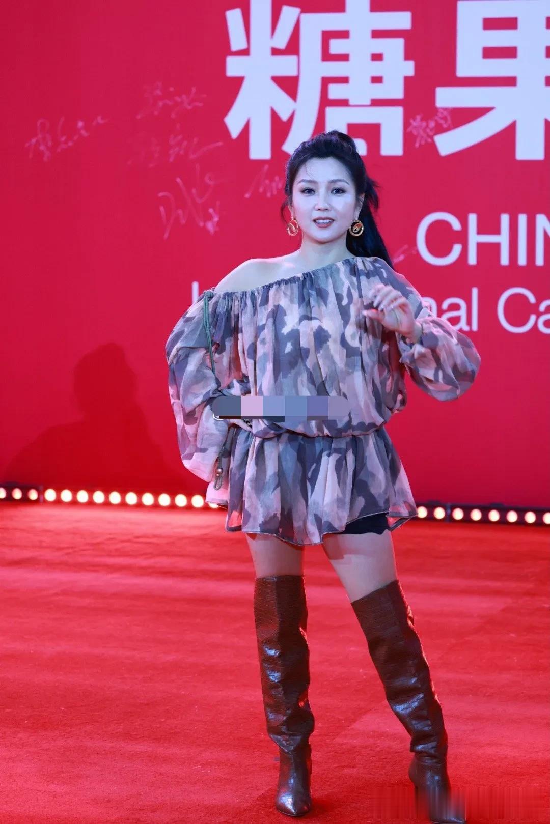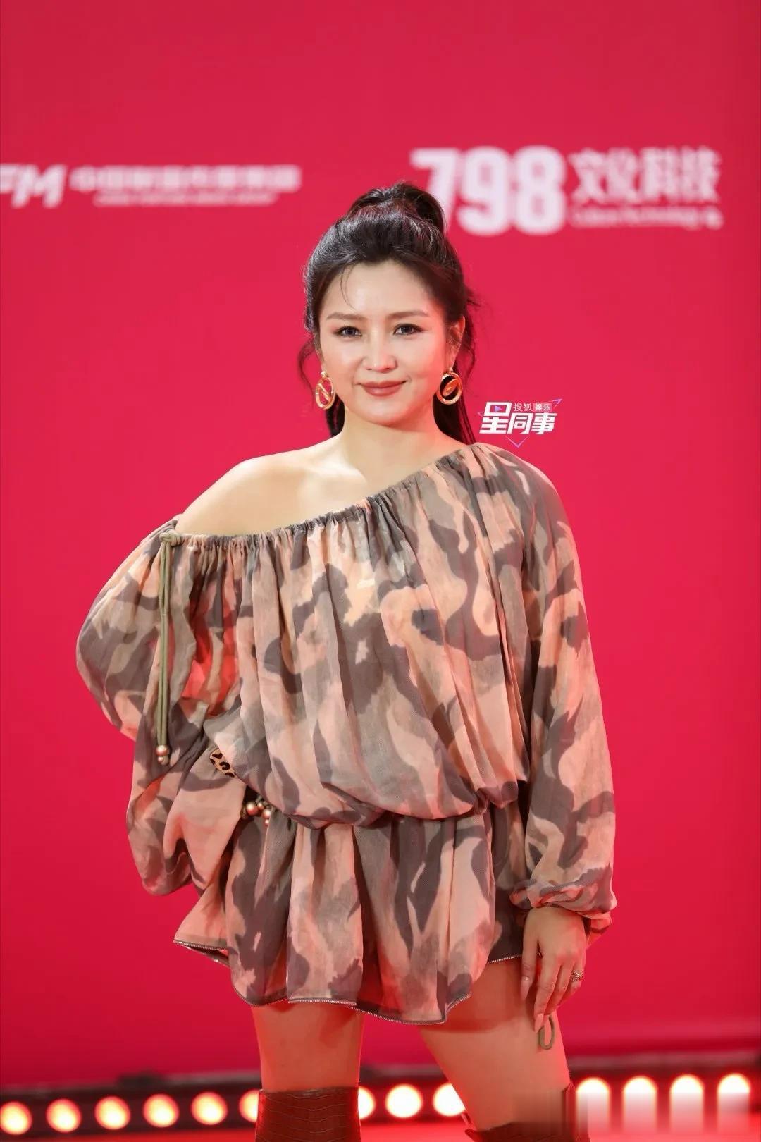 今晚一头中分卷发搭配亮片吊带裙的她,身上的文艺气息淡了不少,反而没有了原本的辨识度。