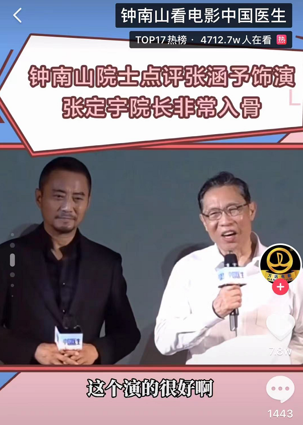 钟南山院士盛赞《中国医生》的事引起了强烈反响,各大官媒争相报道。