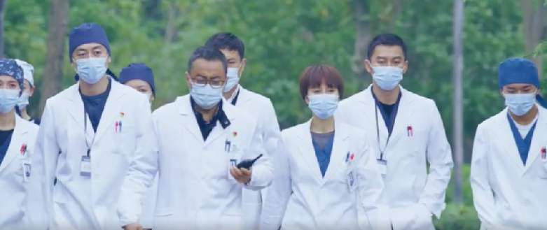 在片中有这样的一幕:张竞予院长在全院组织动员大会,发动一线医护人员抗疫,短暂的沉默后,当镜头划过一张张面孔时,随着一位女医生站起来报名,一个人,两个人,直到所有人都主动请“战”。