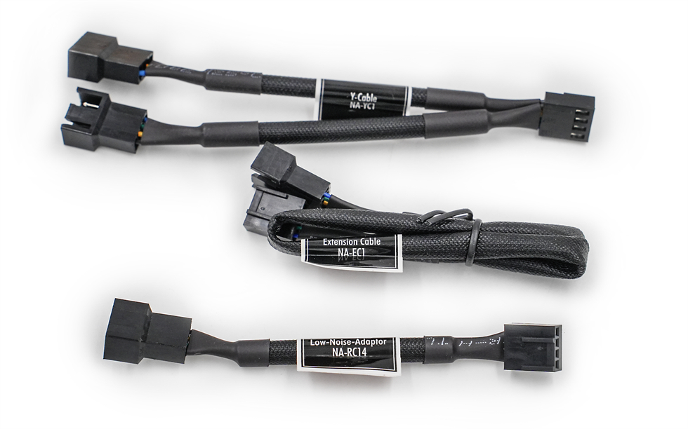 NF-A4×20开箱动图来一张,仅仅4cm的小风扇,配件依然齐全,包括NA-YC1 4-Pin一分二线、NA-RC7减速降噪线、NA-EC1延长线等各种线材,还带4颗NA-AV3防振硅胶软钉,4颗风扇固定螺丝、风扇接头连接器。