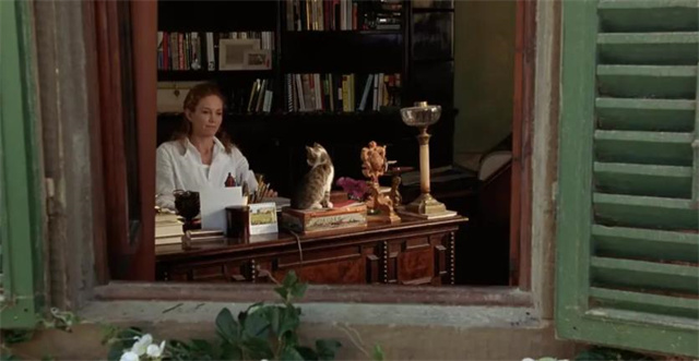 好朋友担心女主会不开心,于是送了她一张机票。好友说:“许多人在生活中都会遇到一个岔道口,往左边或往右边,只能由当事人来决定。”的确,当一个人情绪低落的时候,仅仅是沮丧并没有什么用处,出来透透气也好。然而,女主对这个提议毫不动心,她在自己的房间里,试图写作,但她毫无创作的动力。在绝望中,最终还是听从了好友的劝告,开始前往托斯卡纳,准备潇洒一段时间。