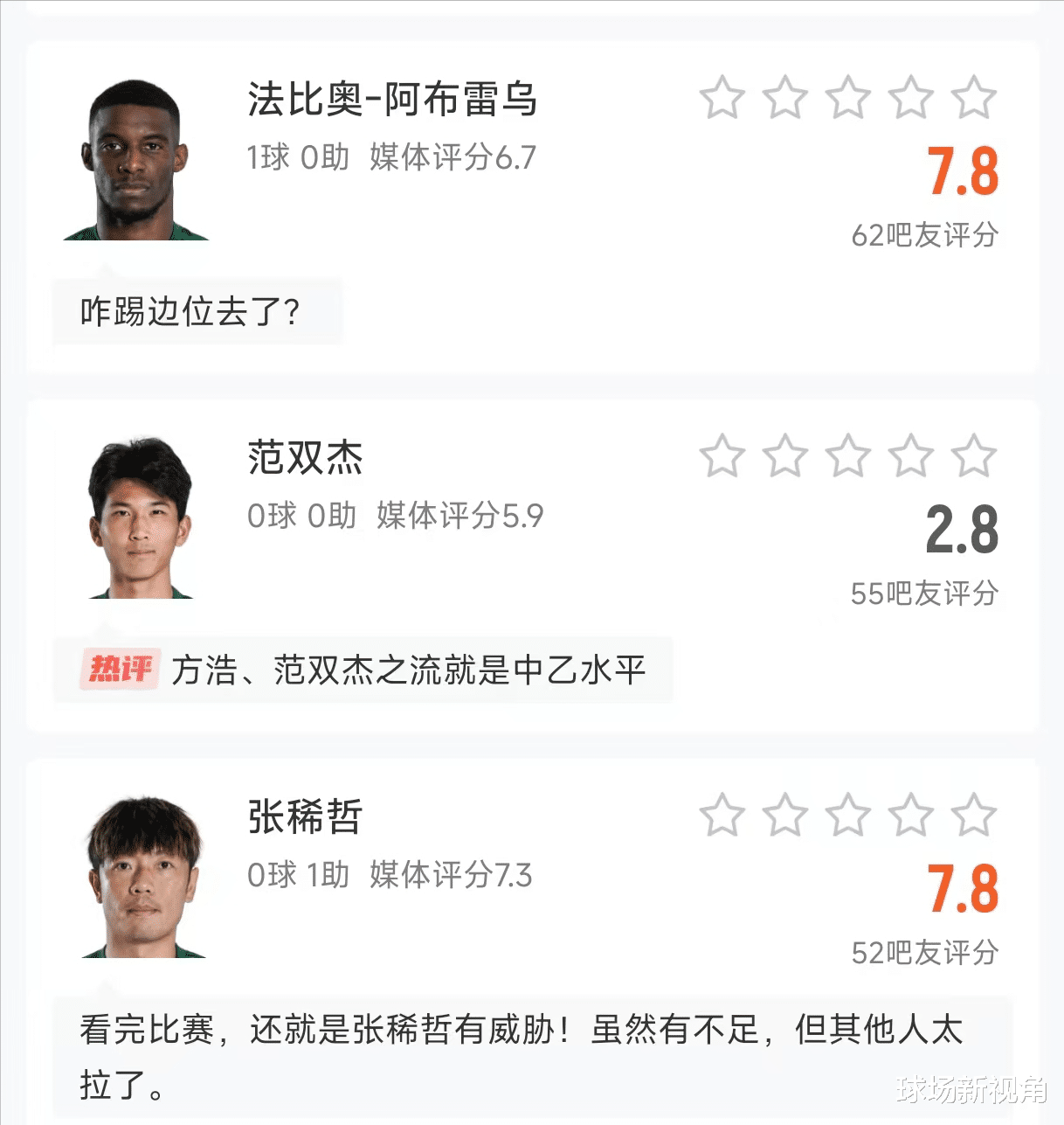 而替补出场的方昊和范双杰,他俩未能在有限的时间拿出应有的表现,尤其是方昊,在处理球方面不懂得变通,加上他球商经常不在线,所以也是有球迷将方昊和范双杰称之为卧龙凤雏的同时,还认为他俩就是中乙水平……