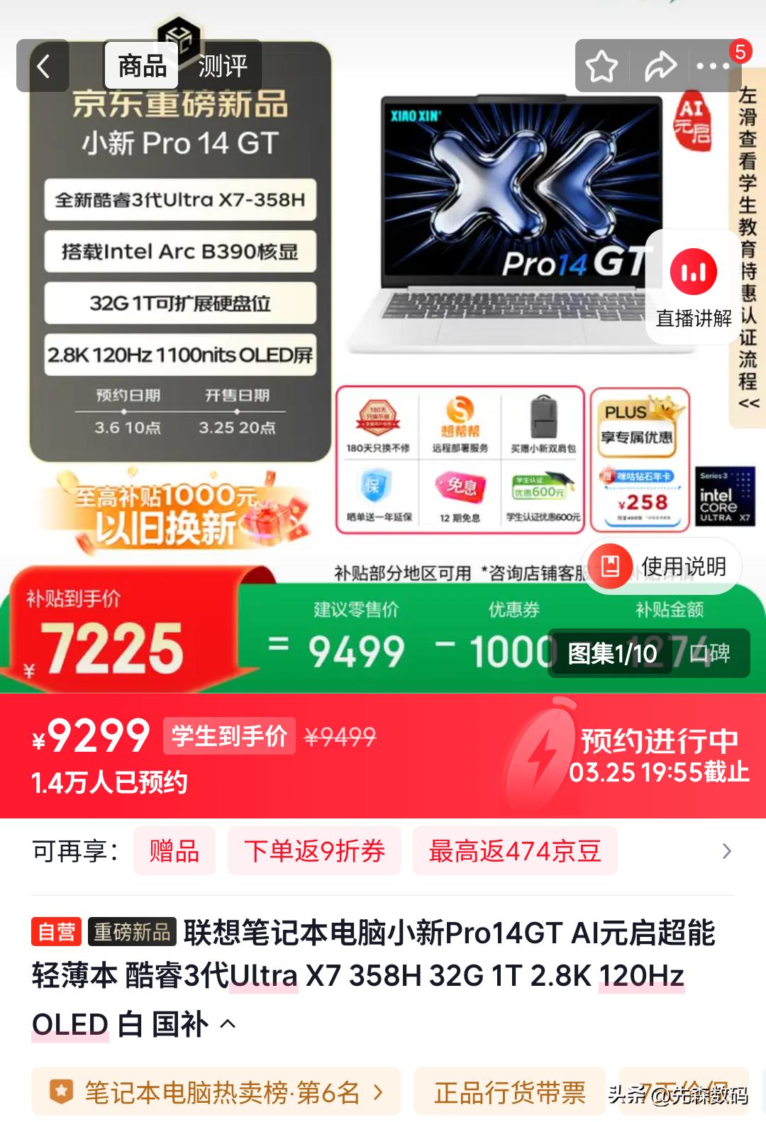 目前定位是轻薄,且配置最为接近的一款电脑是联想小新Pro 14GT,搭载的是酷睿3代Ultra X7 358H 32G+1T,屏幕也是2.8K 120Hz高刷的OLED(但是不支持触摸),这款笔记本重量和厚度都非常接近,价格是9499,但是有1000的优惠券,那就是8499,这也比小米同配置的9999元便宜了1500。