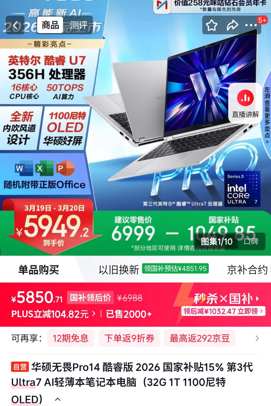 如果把轻薄属性再放宽一点点,那么还能便宜不少,比如华硕无畏Pro142026,第三代Ultra 7 356H+2.8K 1100尼特 OLED屏+32G+1T,价格是6999,比首销期的小米Book14Pro便宜了3000元,如果没有首销优惠,那就是3500的差价。
