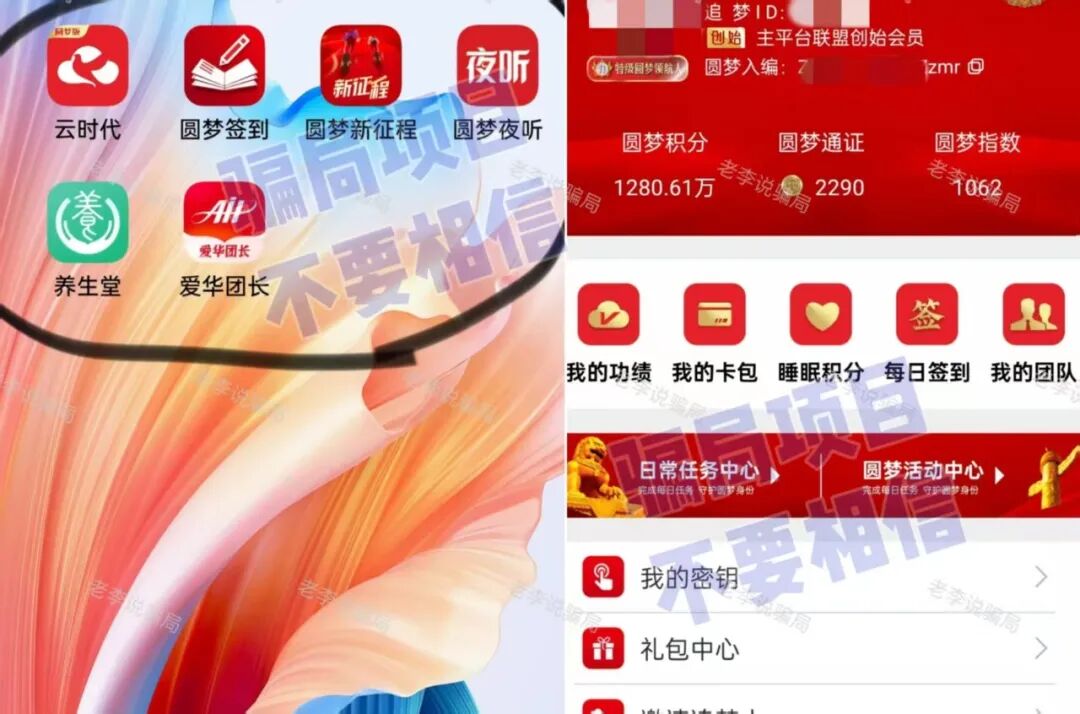 打着“中国梦”旗号,以所谓的“积分”和“通证”,诱导参与者每天在各种软件签到学习、观看广告赚取。