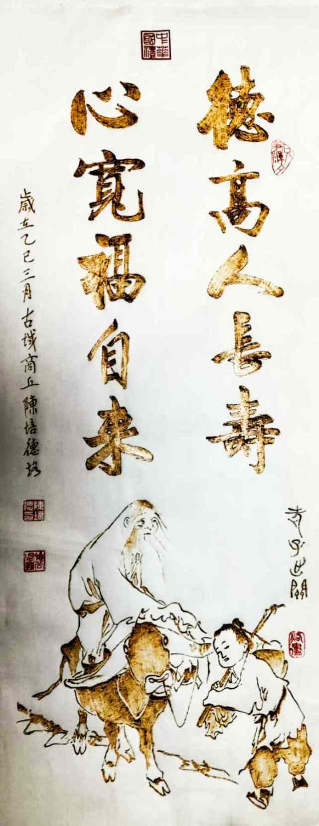 在现代化进程加速的今天,许多传统技艺面临失传的风险。陈培德深知非遗传承的重要性,他不仅潜心创作,还积极参与文化交流与教学,培养新一代烙画人才。他的艺术实践,为非遗保护提供了可借鉴的路径——既要坚守传统技艺的核心,又要结合现代审美进行创新。