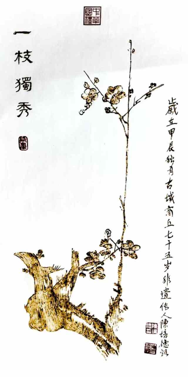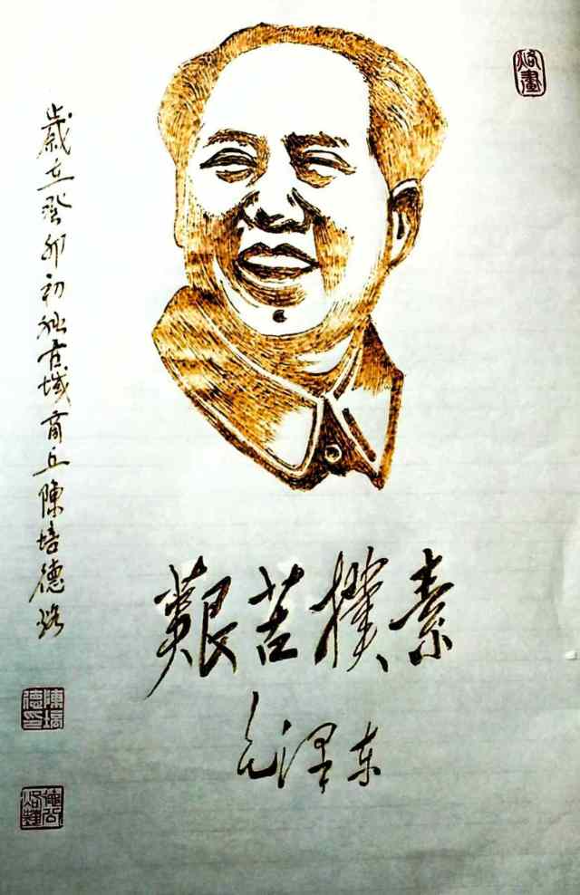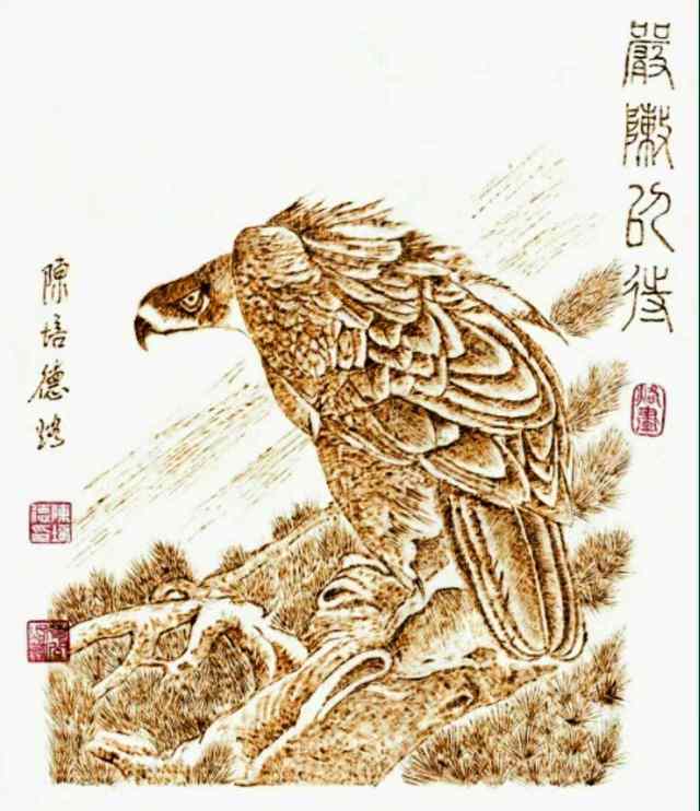 烙画,古称“火针刺绣”,源于汉代,兴盛于明清,是一种以火烧烙铁在木板、竹片或宣纸上作画的传统技艺。然而,宣纸烙画因其材质的特殊性,难度极大——宣纸轻薄脆弱,稍有不慎便会被烙穿或烧焦。陈培德凭借数十年的经验,精准控制烙铁的温度和力度,使火痕在纸上呈现出深浅不一、层次分明的艺术效果。他的作品既有国画的笔墨韵味,又有烙画独有的立体感和沧桑感,形成了独特的艺术风格。