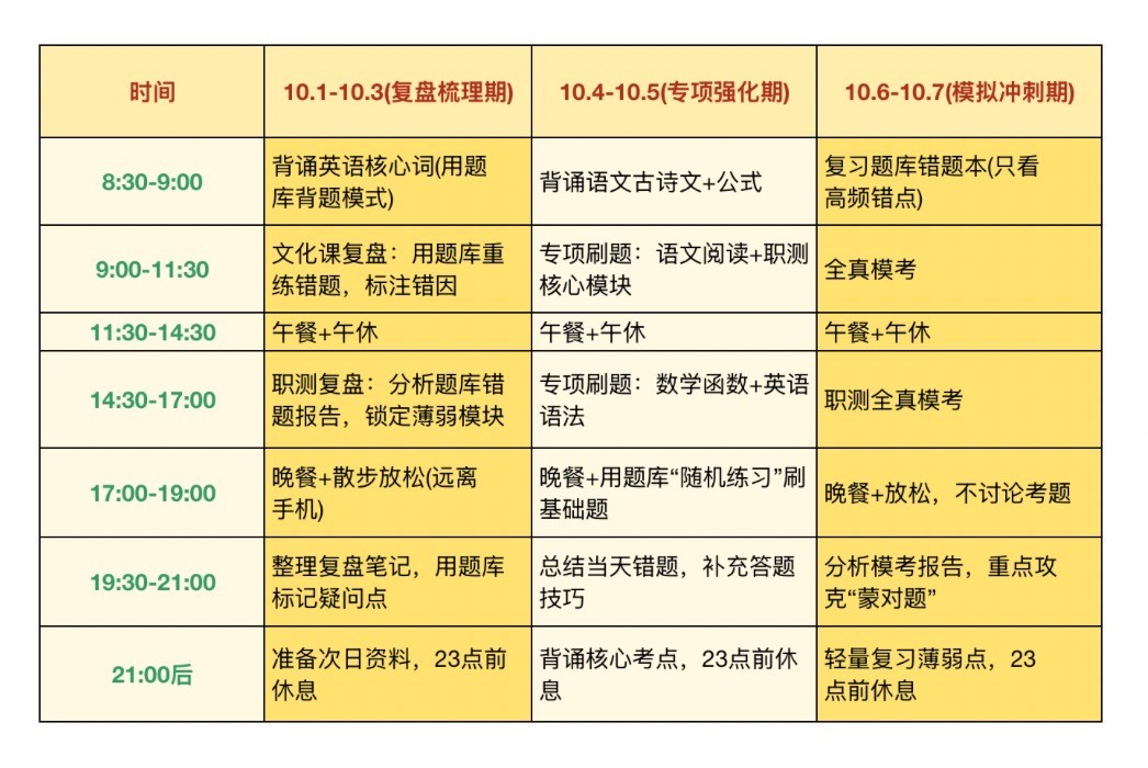 三、国庆7天时间表:每天2小时高效刷题,劳逸结合