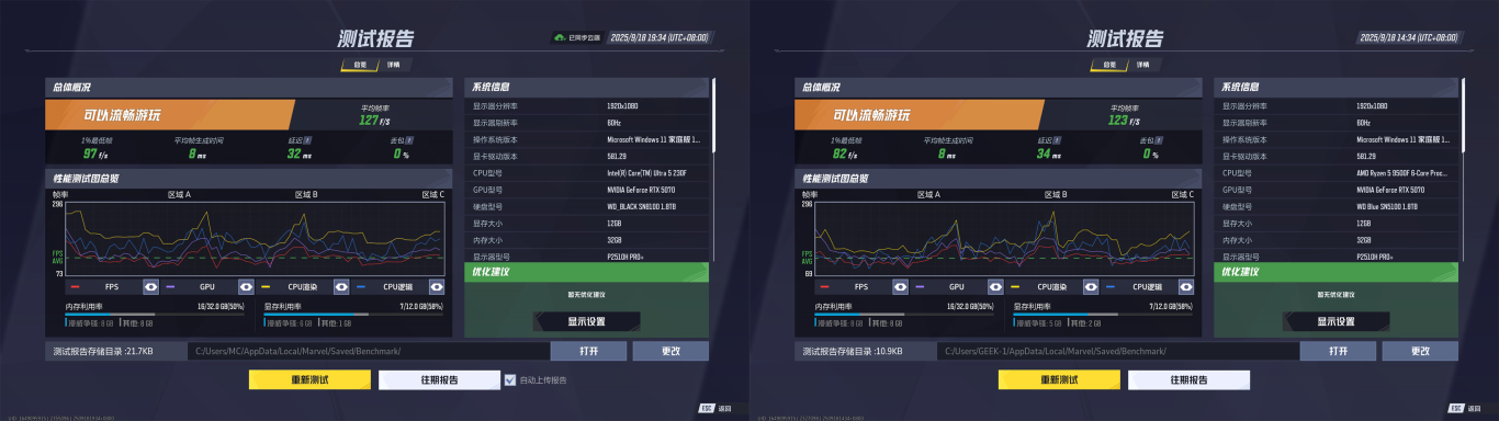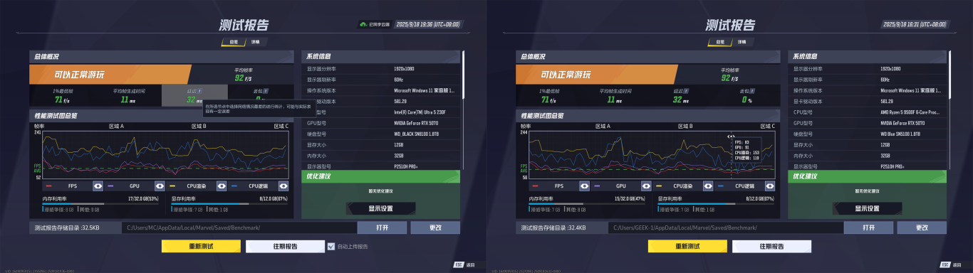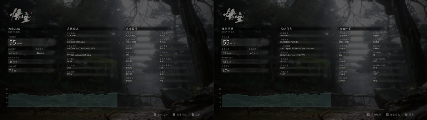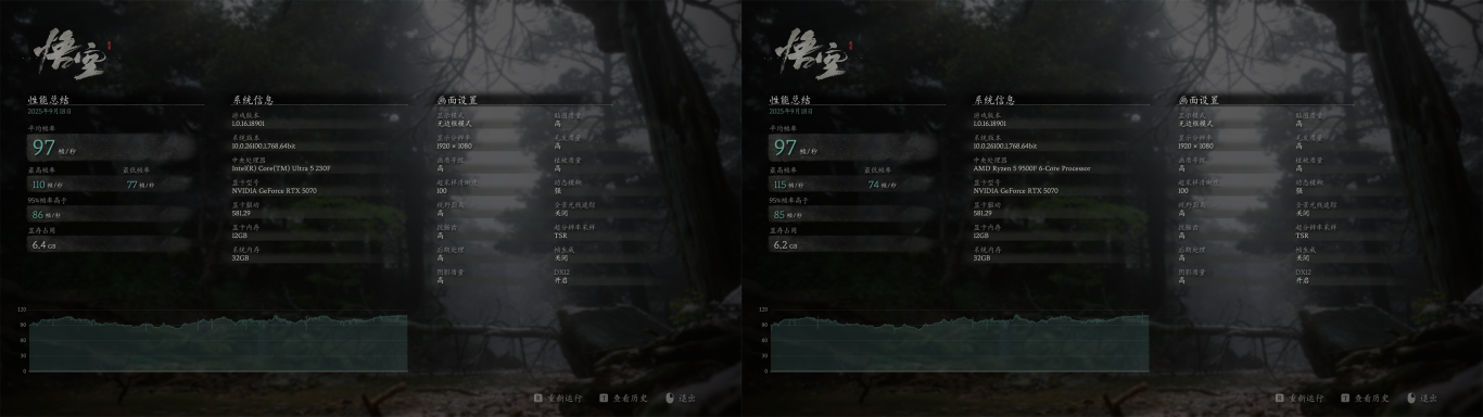 为此,在游戏性能测试环节,我们先通过3DMARK Time Spy测试了两个平台于DX12游戏场景下的理论游戏性能分数,随后通过6款目前热门的游戏进行实测,测试游戏囊括《黑神话:悟空》这类的3A大作以及诸如《三角洲行动》这样的热门电竞网游,并且主要于1080p分辨率下搭配320Hz高刷新率电竞显示屏,从全局设置高画质以及最高画质两个方向进行实测,以模拟当下多数游戏玩家的游戏习惯。