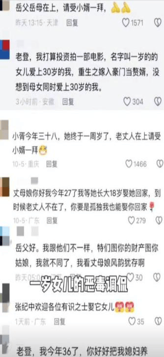 不少网友竟对着一名婴儿大放厥词:“我现在40了,30年后就娶你女儿”、“我60了可以娶你女儿”……这些充满性暗示的‘求娶’留言,被张纪中硬核回怼。