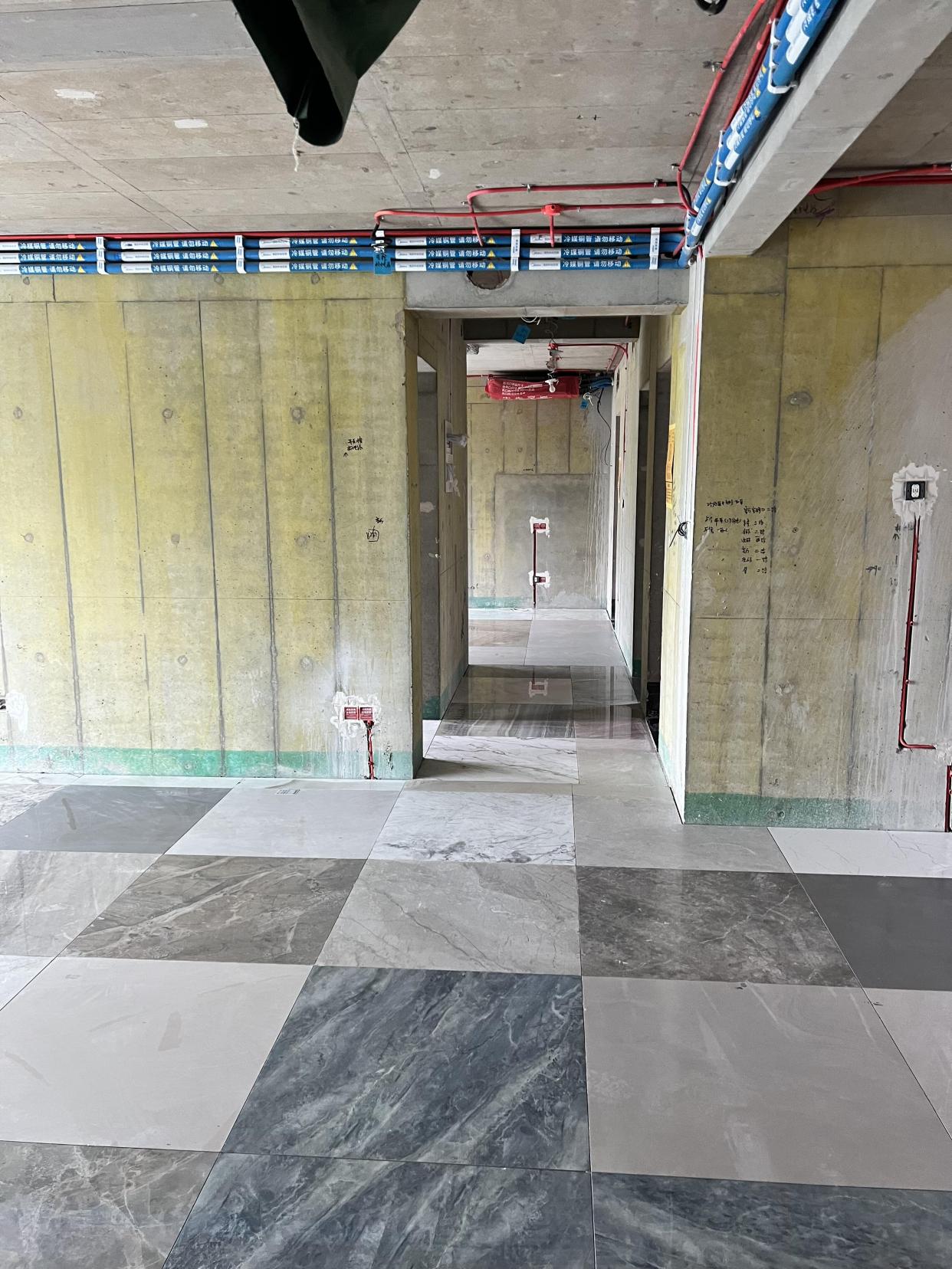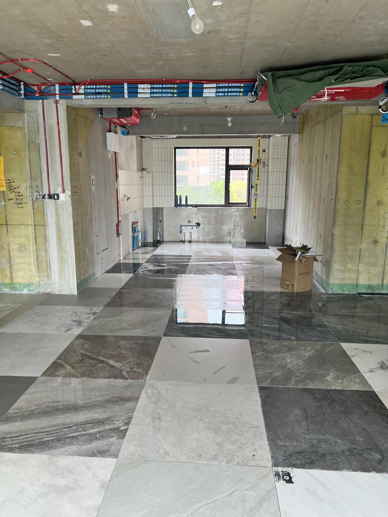 剩下很多没用的瓷砖,退也麻烦,于是铺在地上用来找平,之后地面还要铺木地板。