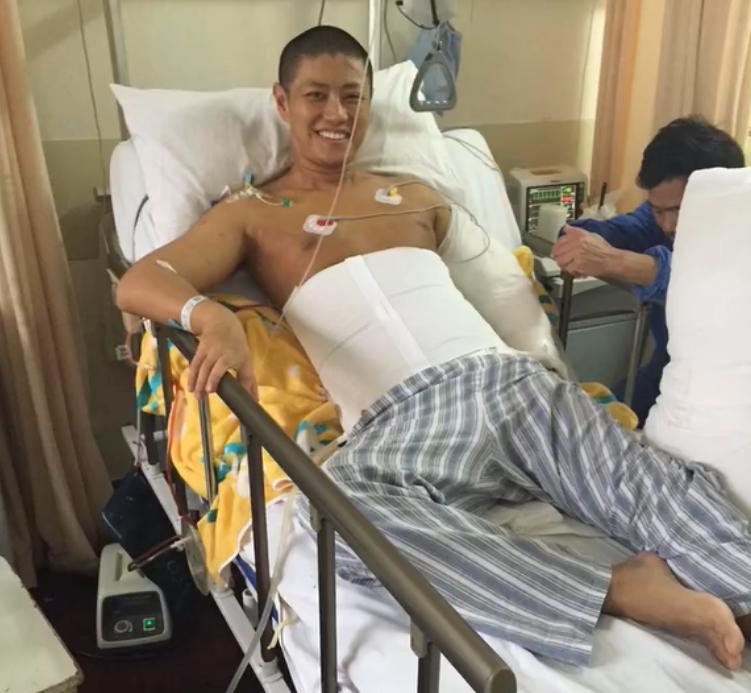 在ICU抢救72小时、昏迷3天后,他住院观察7天,最终保住了性命,但体内永久植入三根钛合金钢钉以固定盆骨。后遗症包括左腿比右腿短2公分、脚踝活动受限和眼皮疤痕,医生判定他不能再拍高强度动作戏,这让他一度陷入事业低谷。