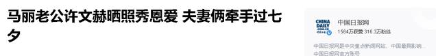 《马丽老公许文赫晒照秀恩爱 夫妻俩牵手过七夕》中国日报网 2018-08-17