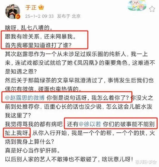 而于正也是个刚的,直接发布了长文喊话赵露思。