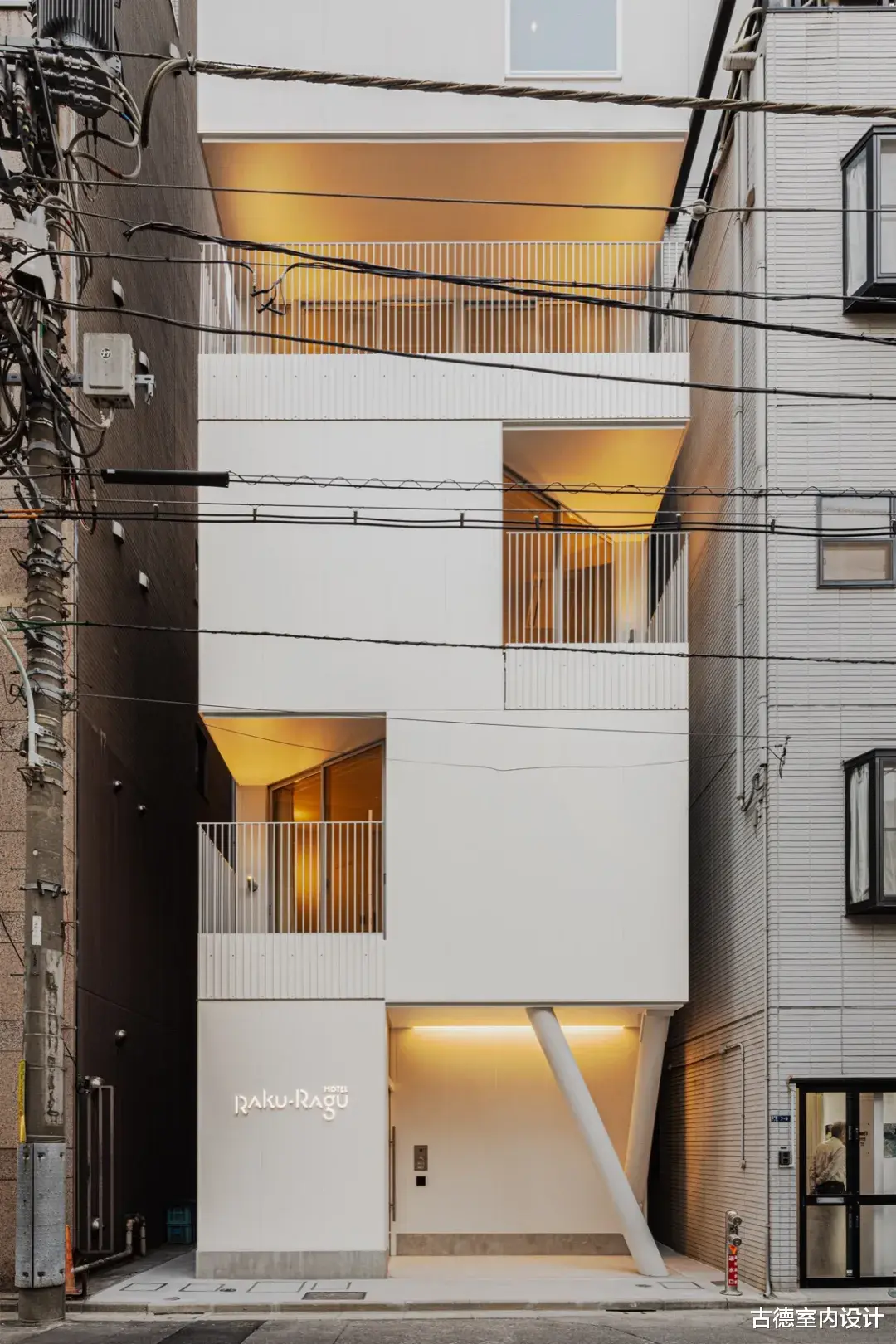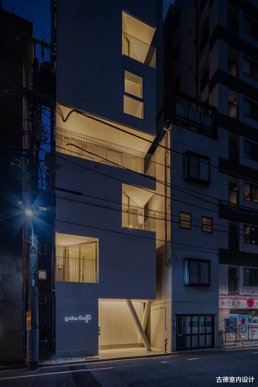 ▲入口© Keishin HorikoshiHotel Rakuragu特意将空间分配给室外空间,通过打造阳台,您可以感受到自然的风和光,并且它具有允许自然通风的被动设计。开口采用 Low-E 玻璃,即使是给人以开放感的大开口,也可以通过缓解夏季的炎热和提高冬季的供暖效率来改善室内舒适度。这家在冠状病毒大流行期间设计规划的酒店,可以让您同时感受到的室内有质感的墙壁和外部环境的光线。