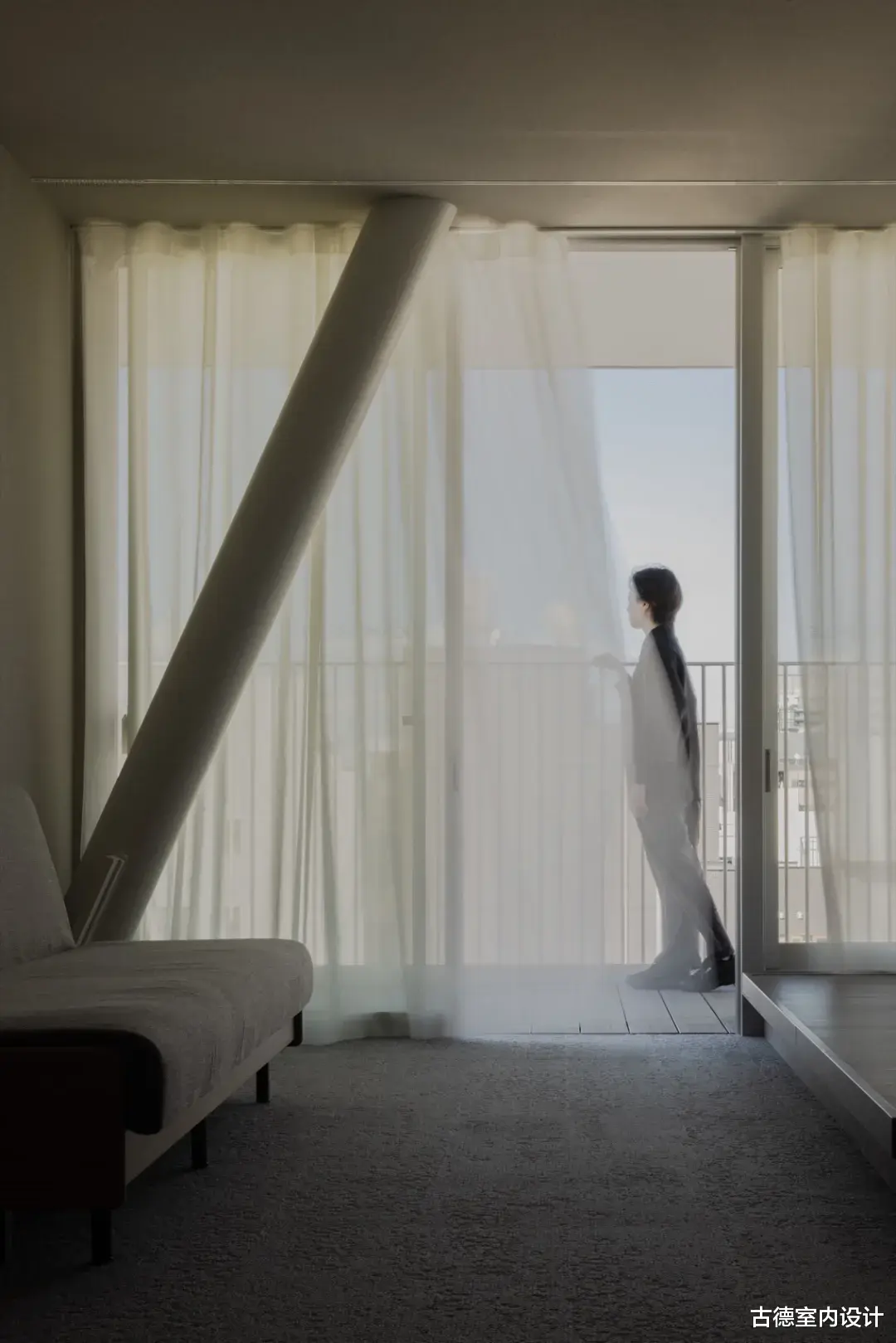 ▲阳台特写© Keishin Horikoshi结构该建筑的一大特色是其结构形式,其外部形状看上去就像是一个被雕刻出来的白色长方体。阳台上没有柱子,以免遮挡客人的外部视野。