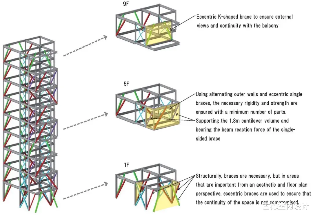 ▲结构分析2 结构(1-5-9F)© 小大建筑设计事务所