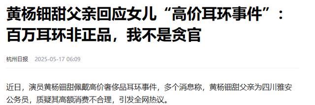 黄杨钿甜父亲回应女儿“高价耳环事件”:百万耳环非正品,我不是贪官