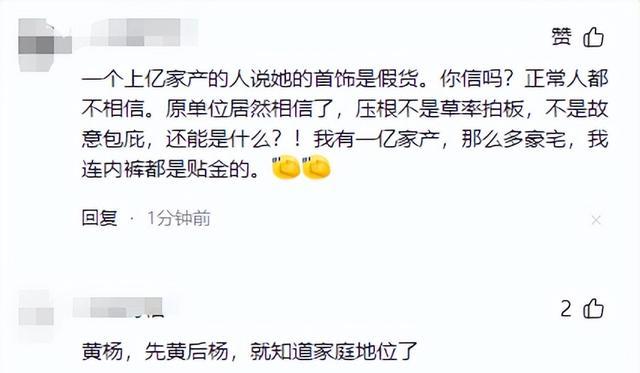 网友扒出耳环公价230万,黄父杨伟紧急回应说是假的,高仿的,想要用义乌货来蒙混过关。