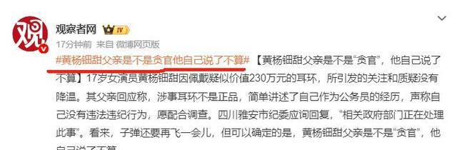 《观察者网》直言:黄杨钿甜父亲是不是贪官他自己说的不算。