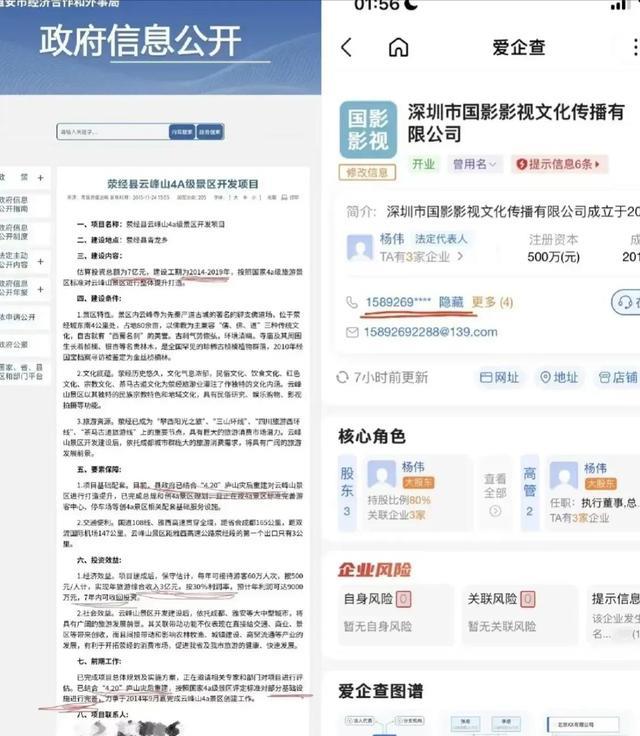 网友顺藤摸瓜,扒出了杨伟的神操作,2014年以公务员身份注册了影视公司,电话与雅安7亿灾后重建项目联系人一致,这不就是典型的左手拿公章,右手开公司。
