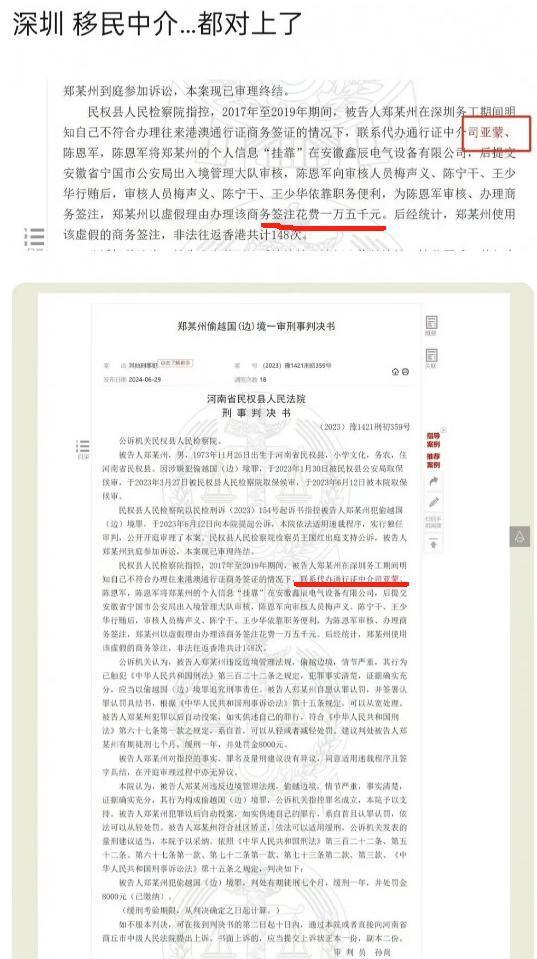 原来在2012年,司女士在深圳成立了移民公司,据说她的弟弟司某蒙因为出售假签证被判刑。